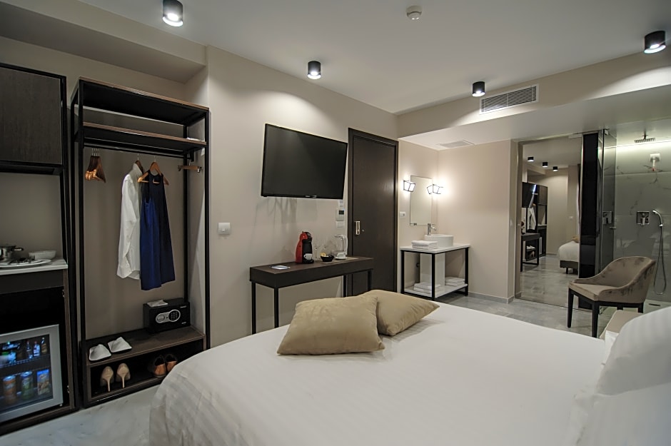 Superior Twin or Double Studio with Acropolis View is 205 square feet and includes a king-size bed 150-183 width.
